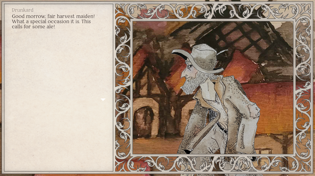 You have been selected as this year’s harvest maiden: a symbol of respect for the land, set to be sacrificed to the woods bordering the village to ensure your people are fed well into the wintertime. You are resigned to your fate, beholden to the village and the endless gratitude they have shown you, until your best friend begs you to reconsider. Can you give this mantle up? Is it worth breaking from an age-old tradition to save yourself? And will running from your fate doom everyone you love? Explore the village, speak with the townsfolk, and deliberate on your situation before it’s too late and the darkness of the woods envelopes you one last time.